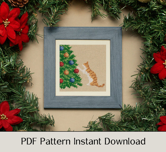 Cat and Christmas Tree - Digital PDF Cross Stitch Pattern