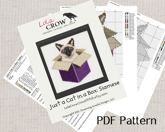 Just a Cat in a Box: Siamese - Digital PDF Cross Stitch Pattern