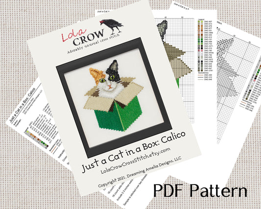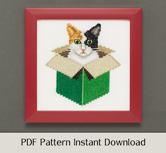 Just a Cat in a Box: Calico - Digital PDF Cross Stitch Pattern