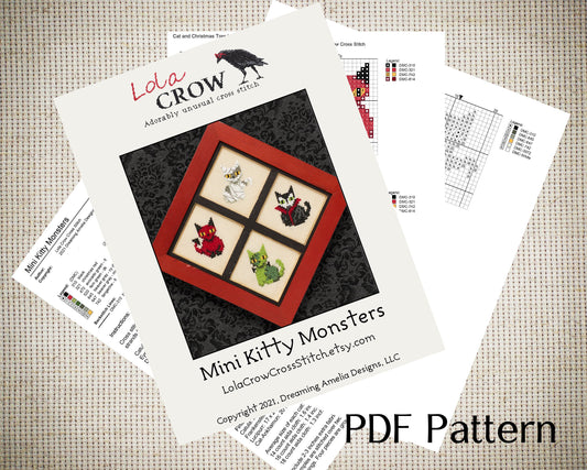Mini Kitty Monsters - Digital PDF Cross Stitch Pattern