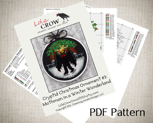 Mothman in a Winter Wonderland - Digital PDF Cross Stitch Pattern