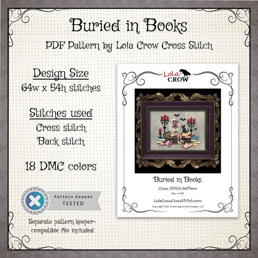 Buried in Books - Digital PDF Cross Stitch Pattern