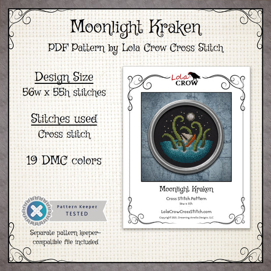 Moonlight Kraken - Digital PDF Cross Stitch Pattern