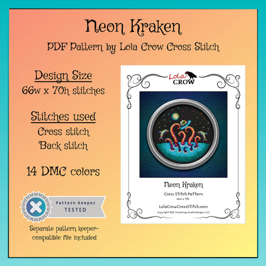 Neon Kraken - Digital PDF Cross Stitch Pattern