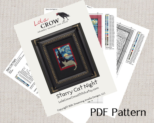 Starry Cat Night - Digital PDF Cross Stitch Pattern