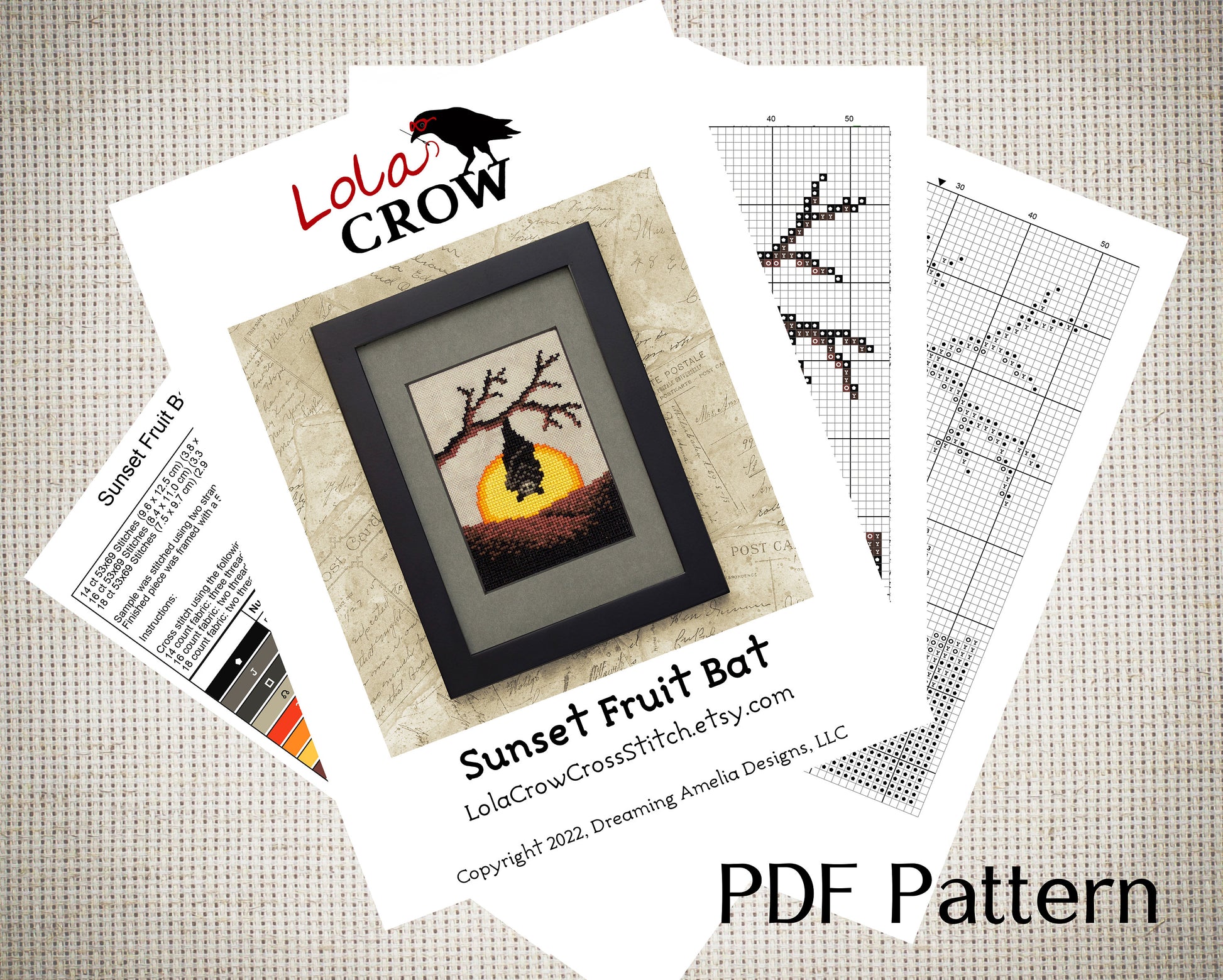 Sunset Fruit Bat - Digital PDF Cross Stitch Pattern