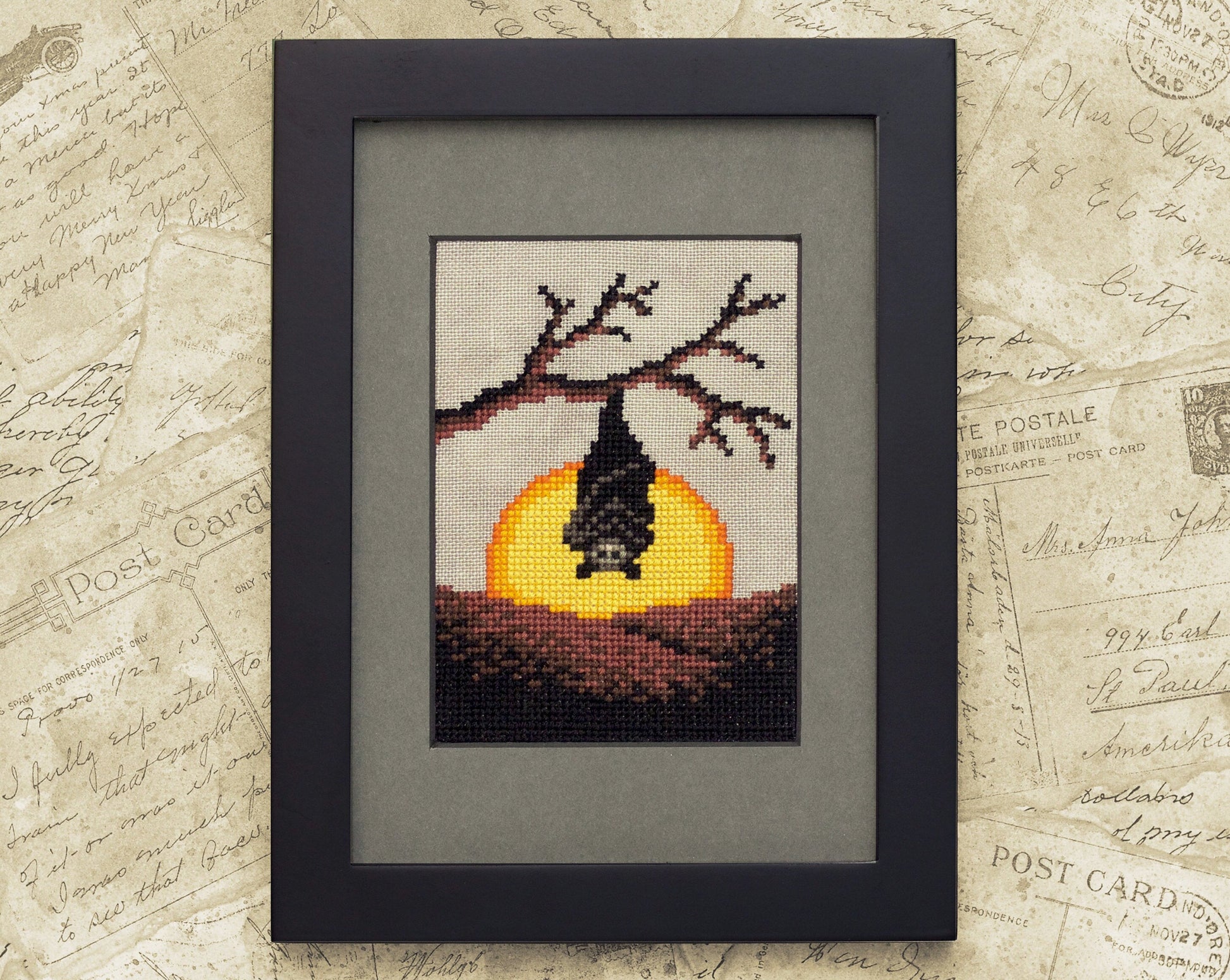 Sunset fruit bat cross stitch pattern, PDF instant download.