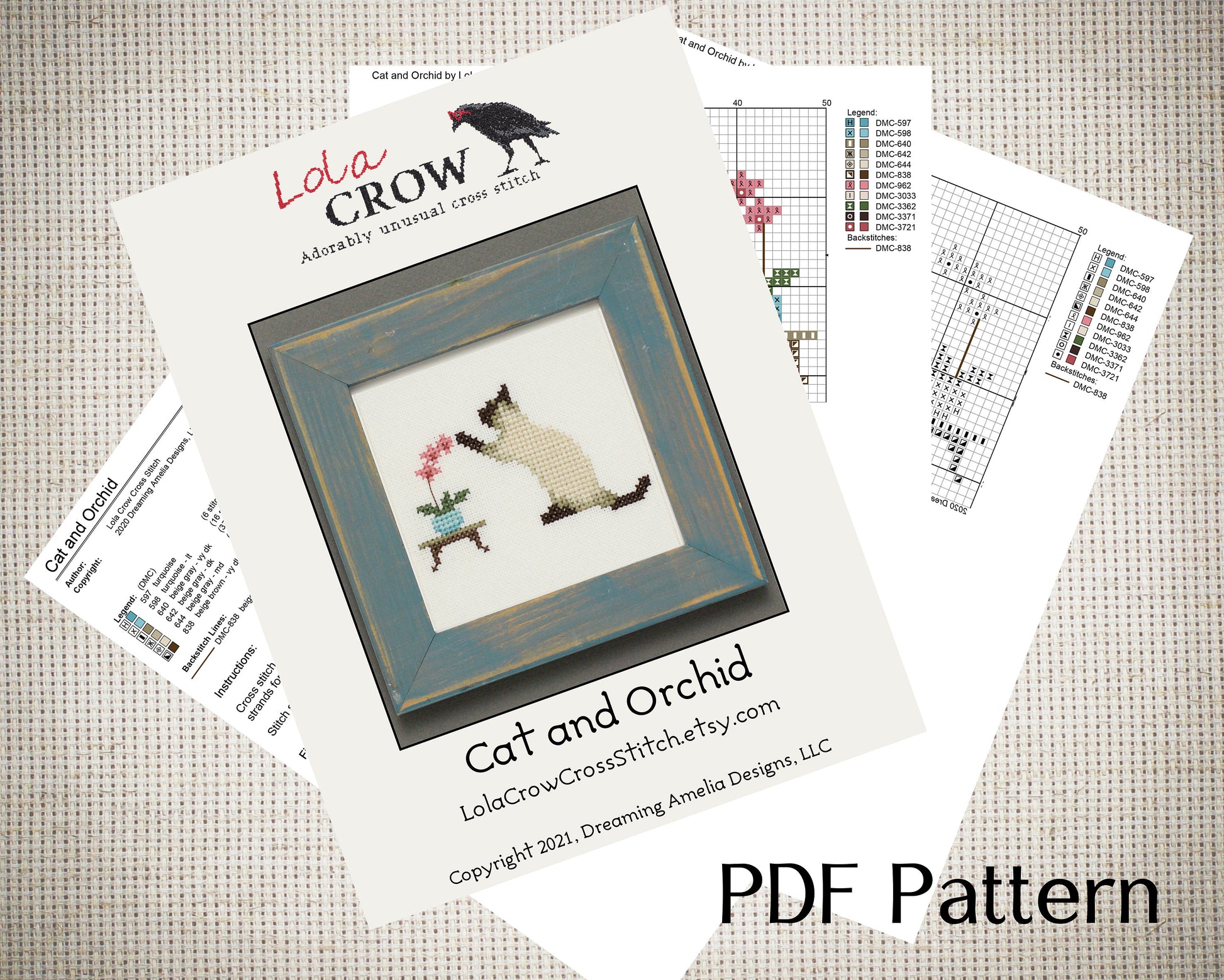 Cat and Orchid - Digital PDF Cross Stitch Pattern