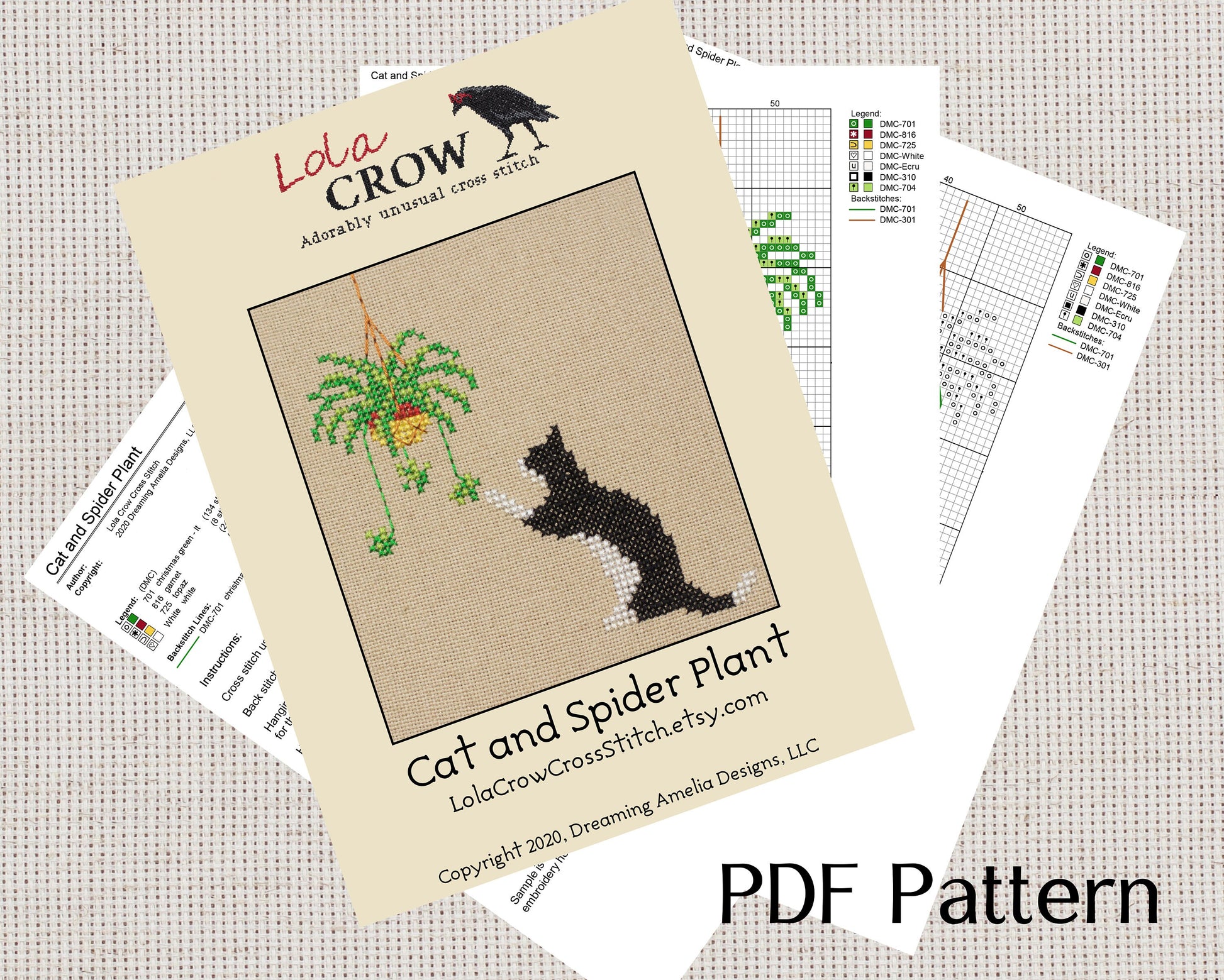 Cat and Spider Plant - Digital PDF Cross Stitch Pattern