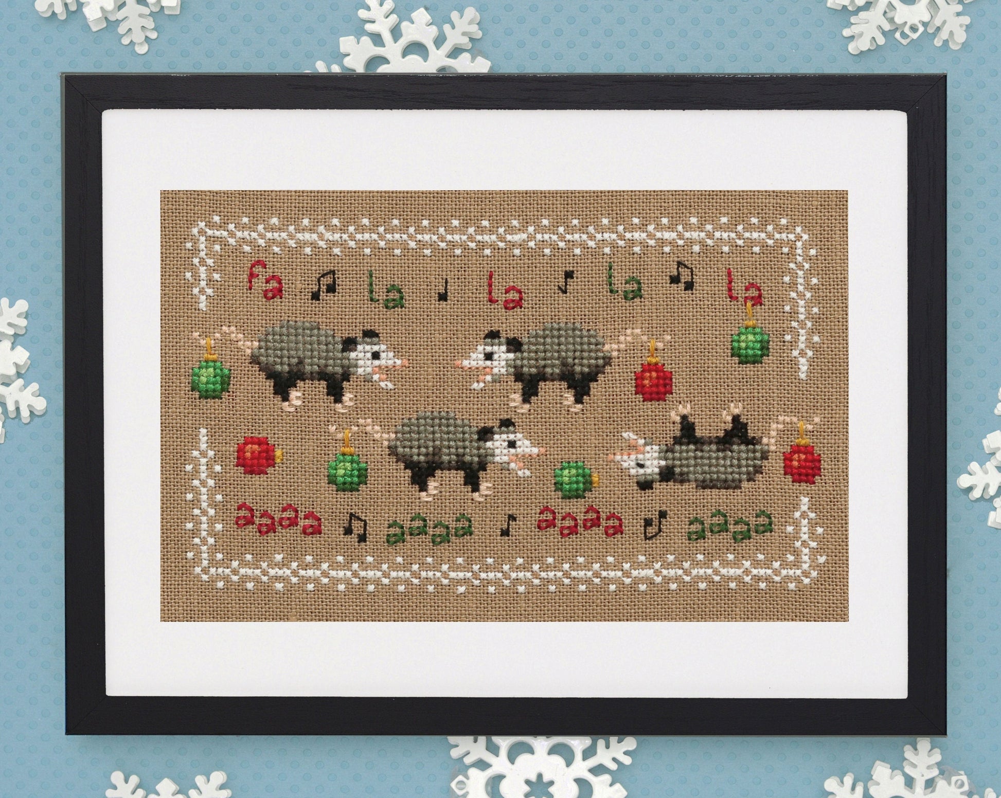 "Fa La Aaaa" Christmas opossum cross stitch pattern