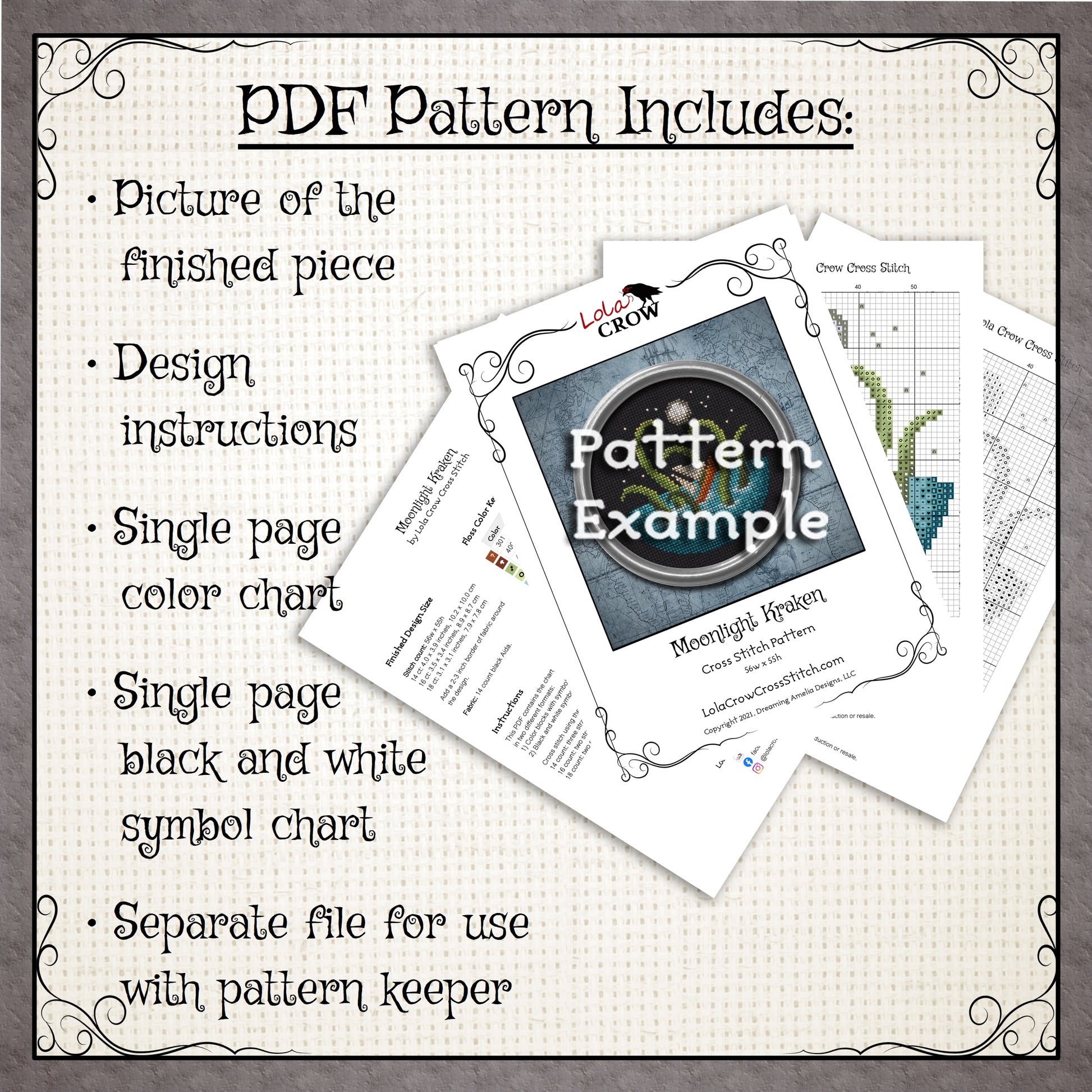The skill level of this cross stitch pattern is advanced beginner/intermediate. There are many color changes, a small amount of back stitching, a handful of 3/4 stitches.