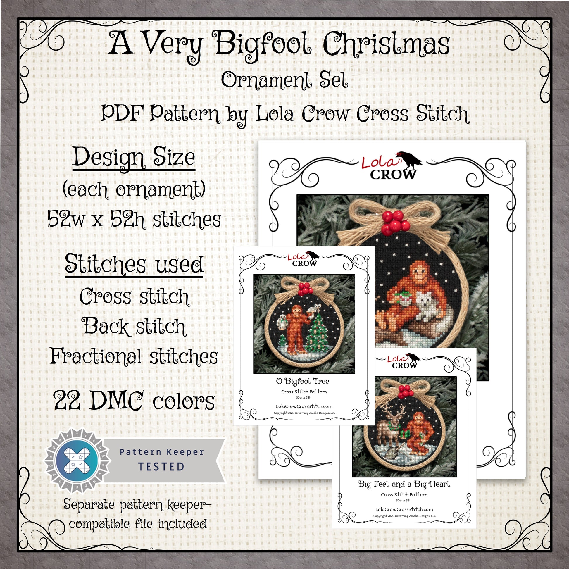 A Very Bigfoot Christmas Ornament Set - Digital PDF Cross Stitch Pattern