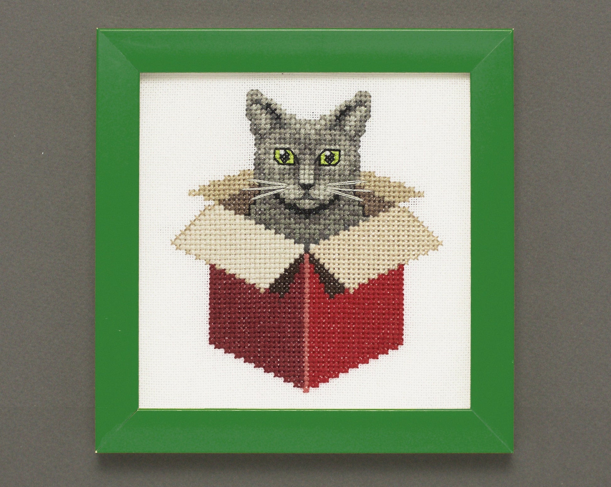 It's just a cat in a box and all the adorable charm that goes along with that phenomenon. This cross stitch pattern has some back stitching, 3/4 stitches and detail work, so it is best for more adventurous beginners or experienced cross stitchers.