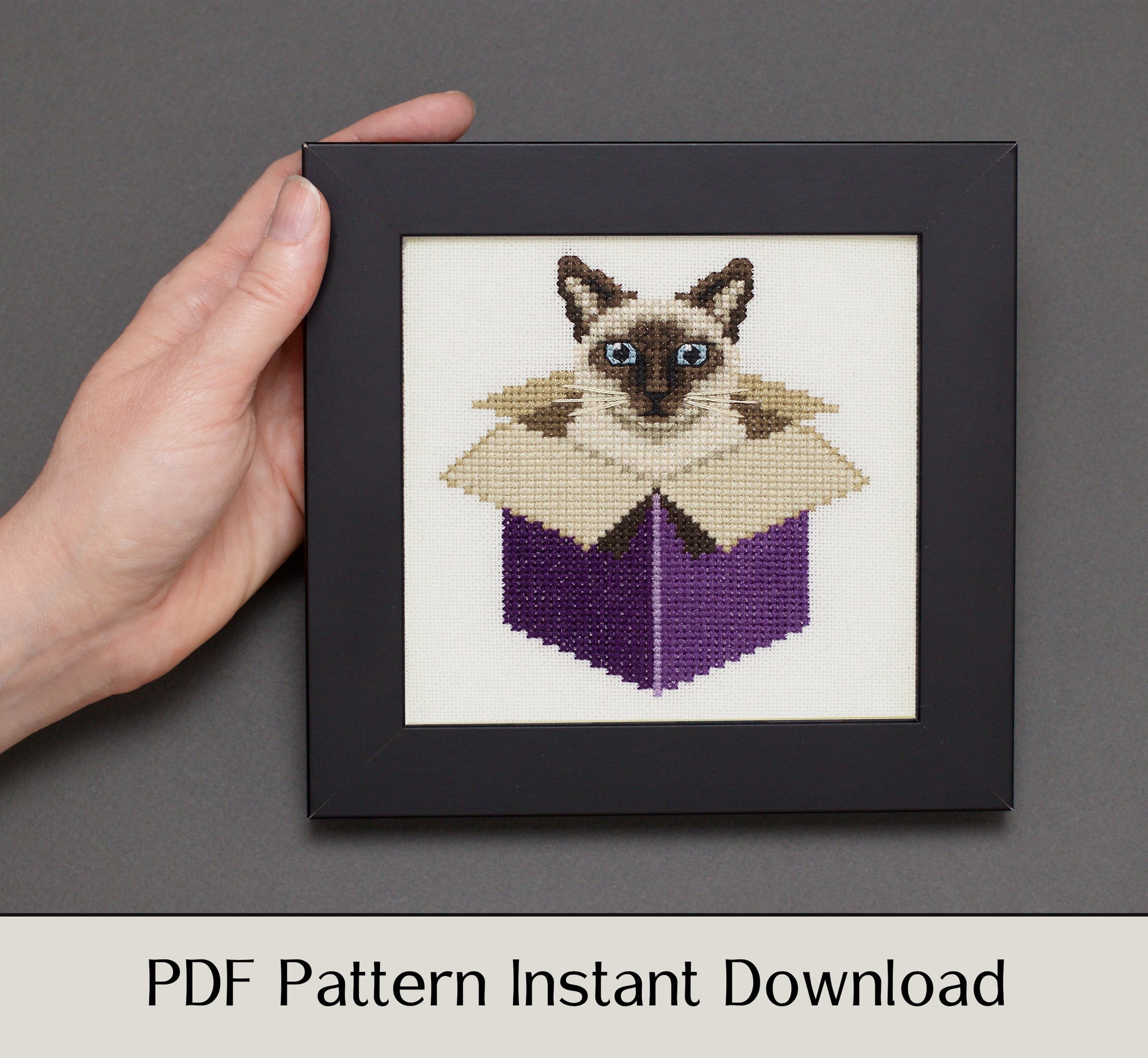 Just a Cat in a Box: Siamese - Digital PDF Cross Stitch Pattern