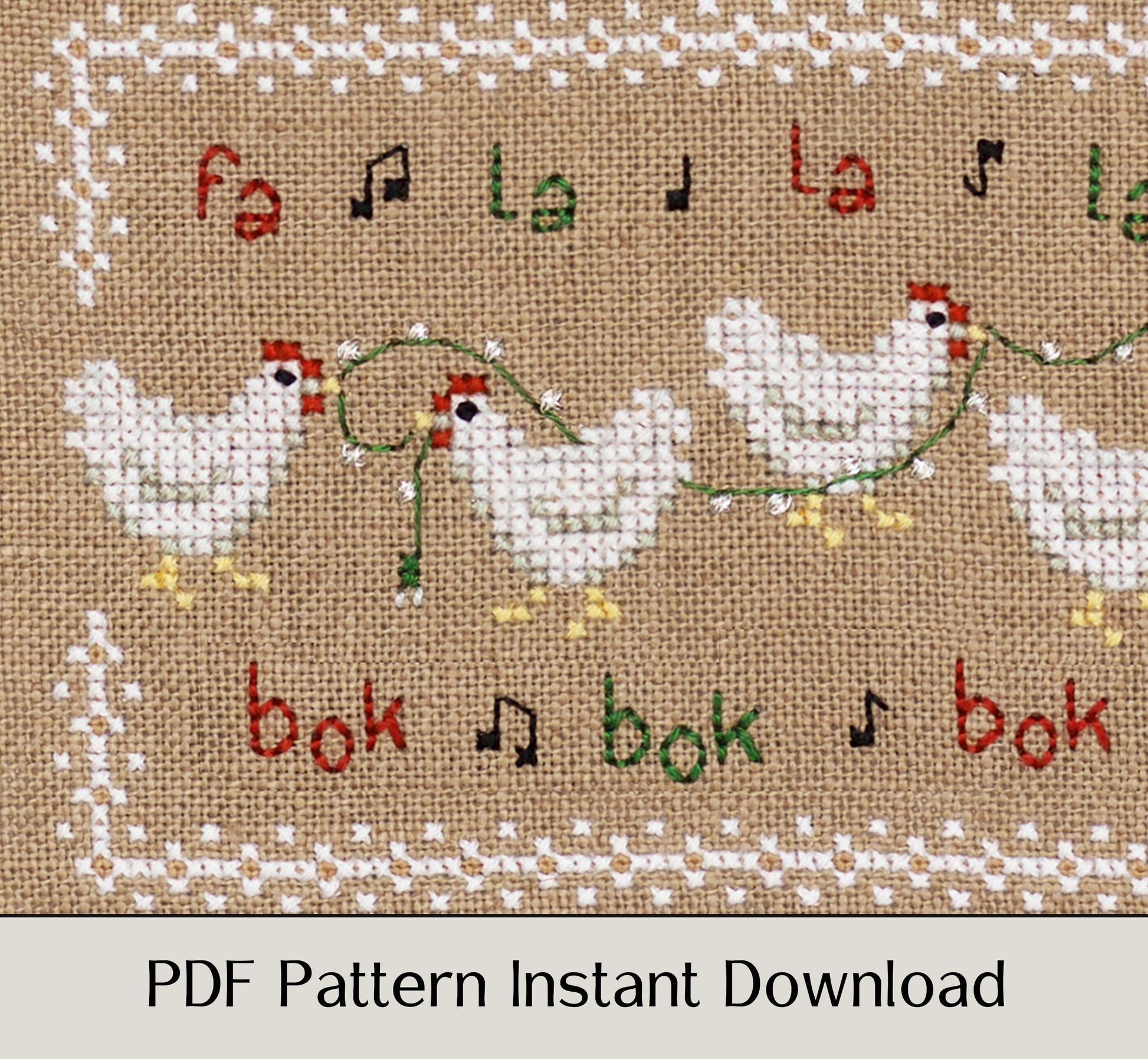 Fa La La Bok Bok - Digital PDF Cross Stitch Pattern