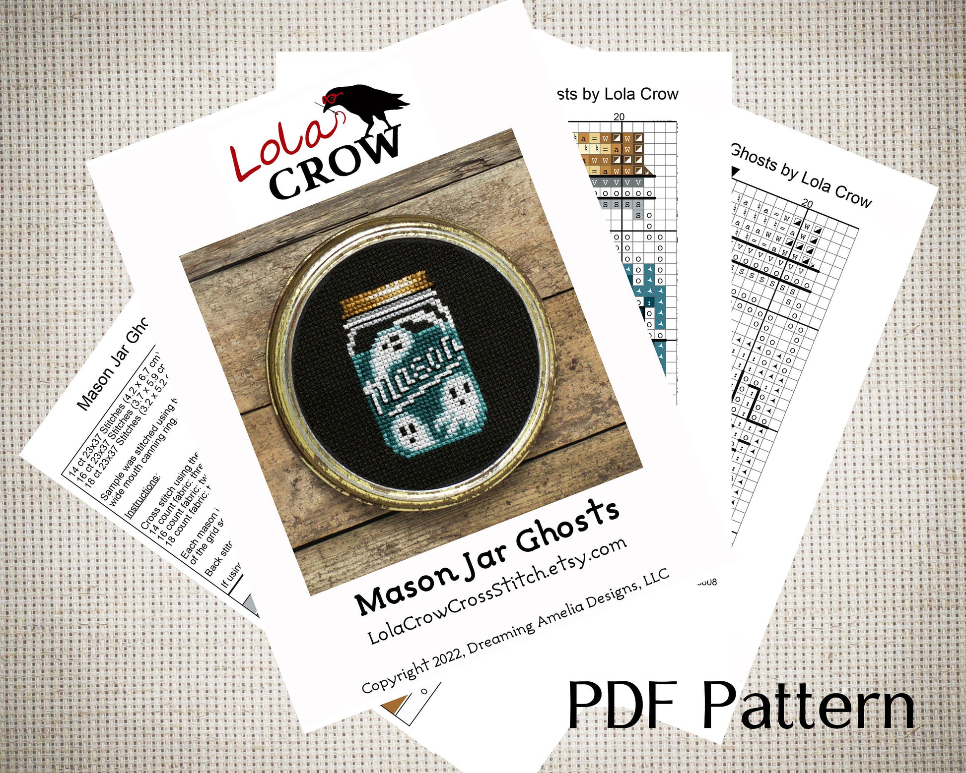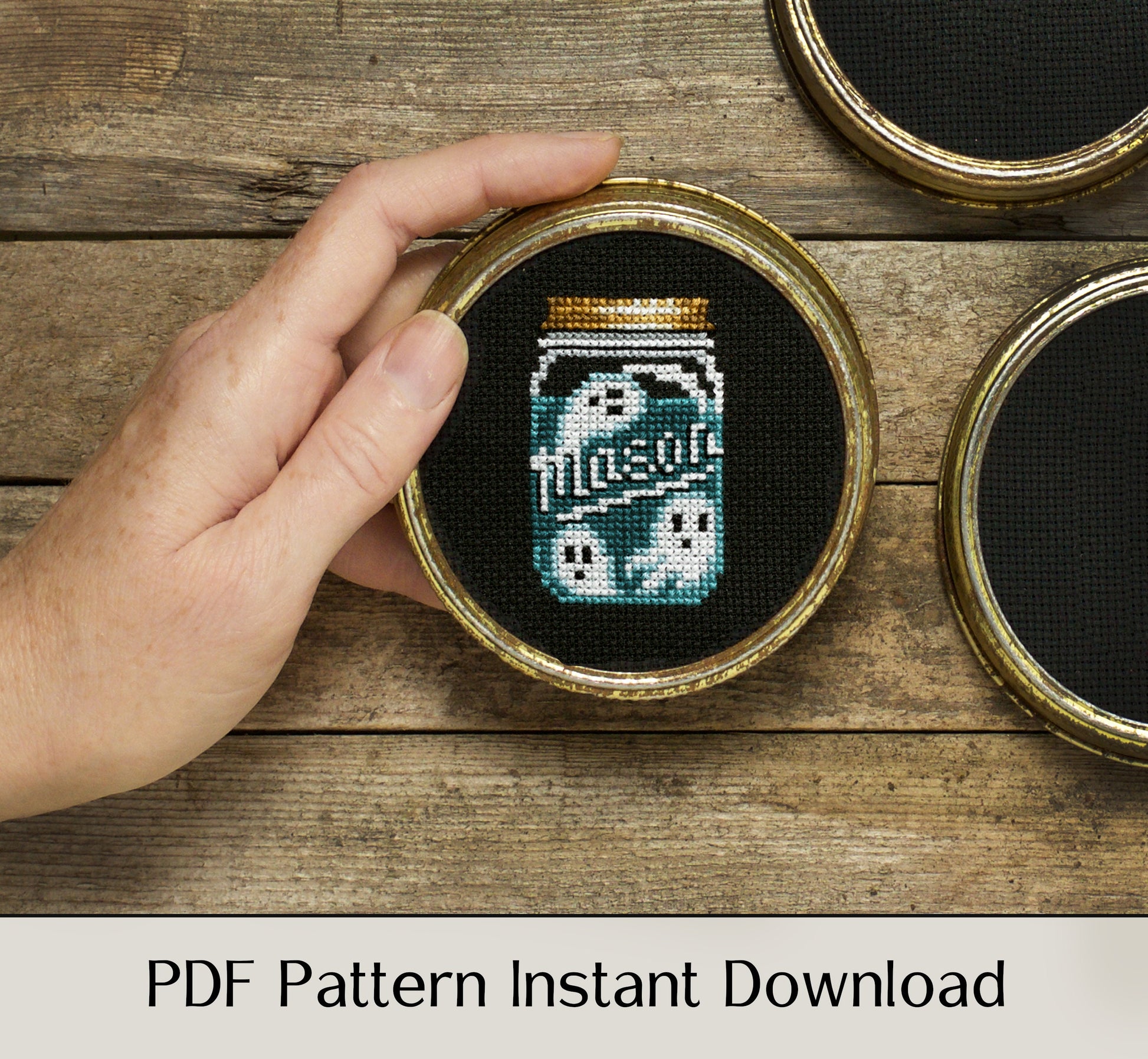 Mason Jar Ghosts - Digital PDF Cross Stitch Pattern