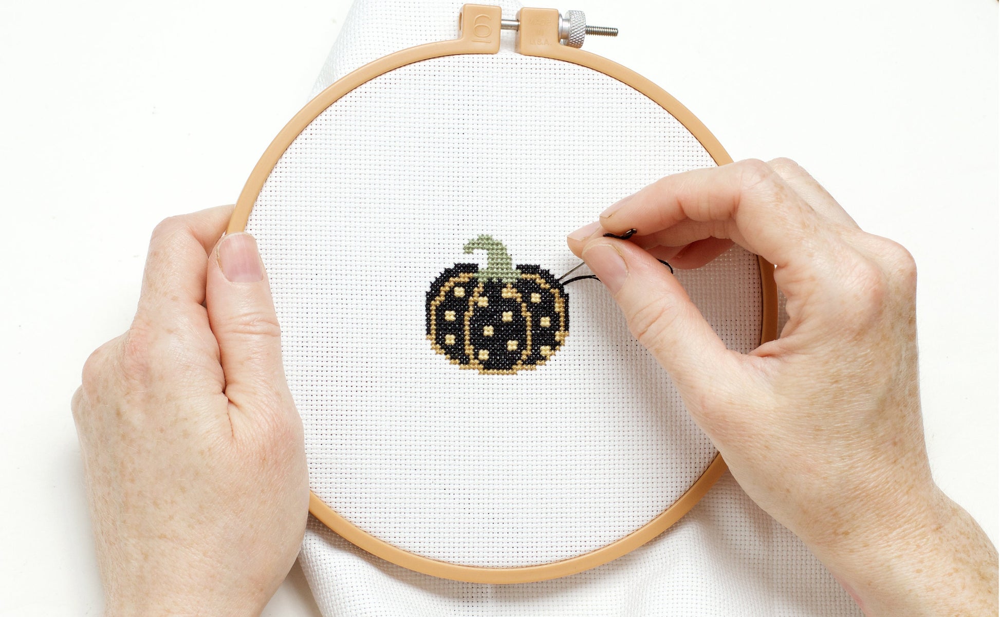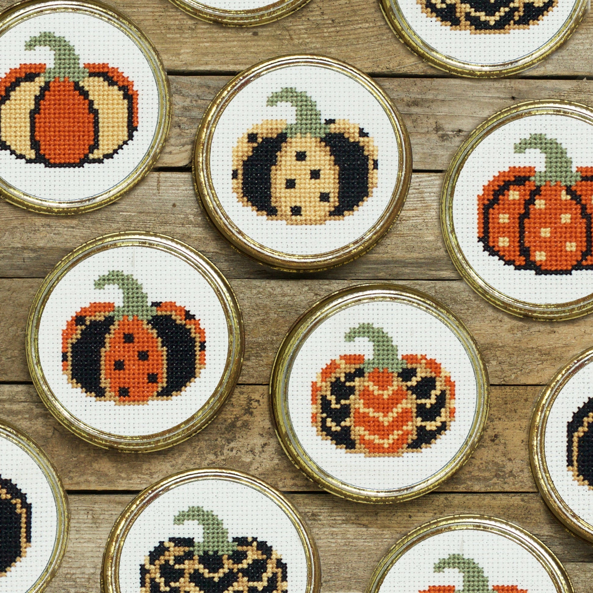 These adorable painted pumpkins are a chic addition to your Halloween decor. Stitch individual pumpkins for a quick evening project, or the whole sampler of 9. This pattern is easy to stitch and a fun project for both beginners and experienced cross stitchers.