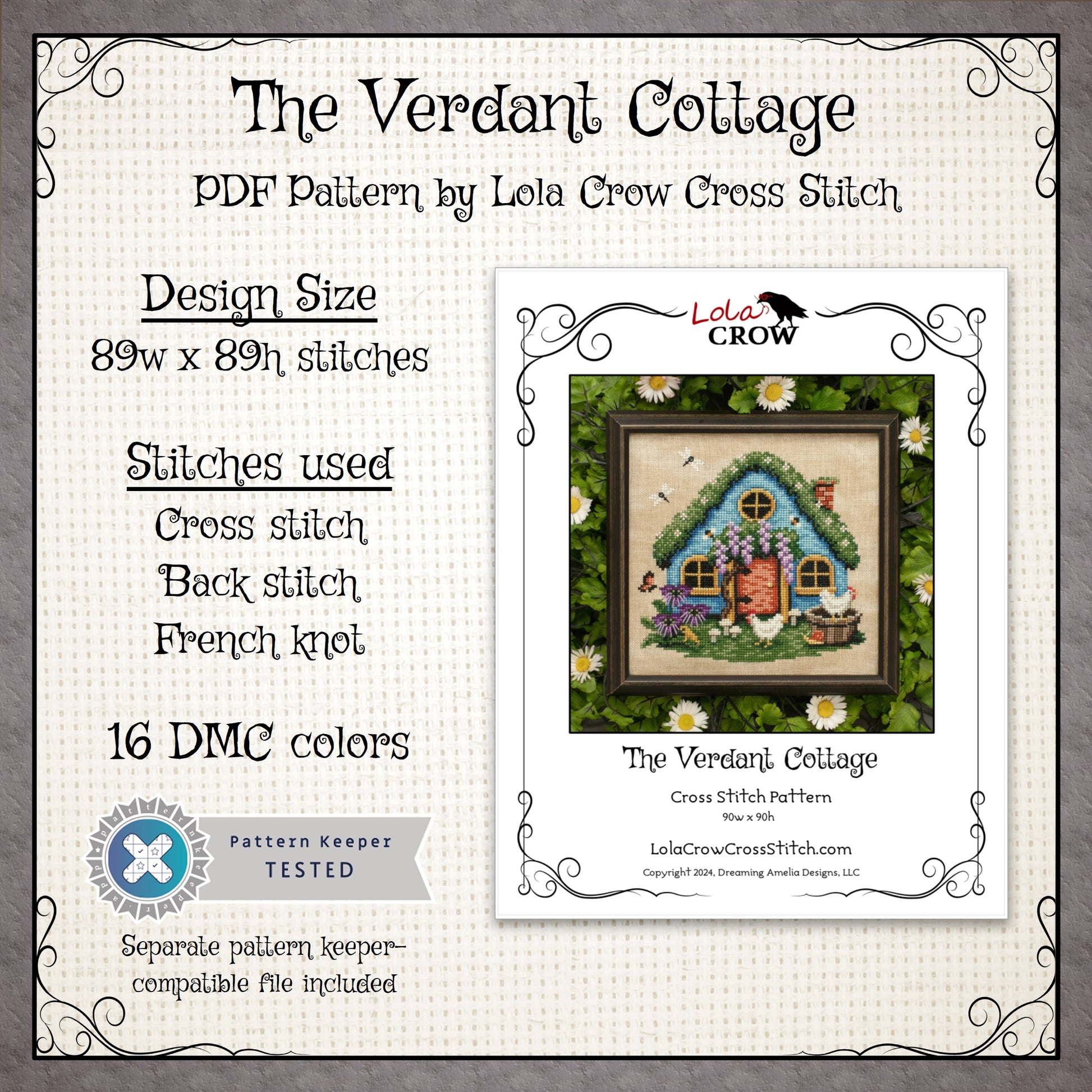 "The Verdant Cottage" cross stitch pattern PDF instant download.